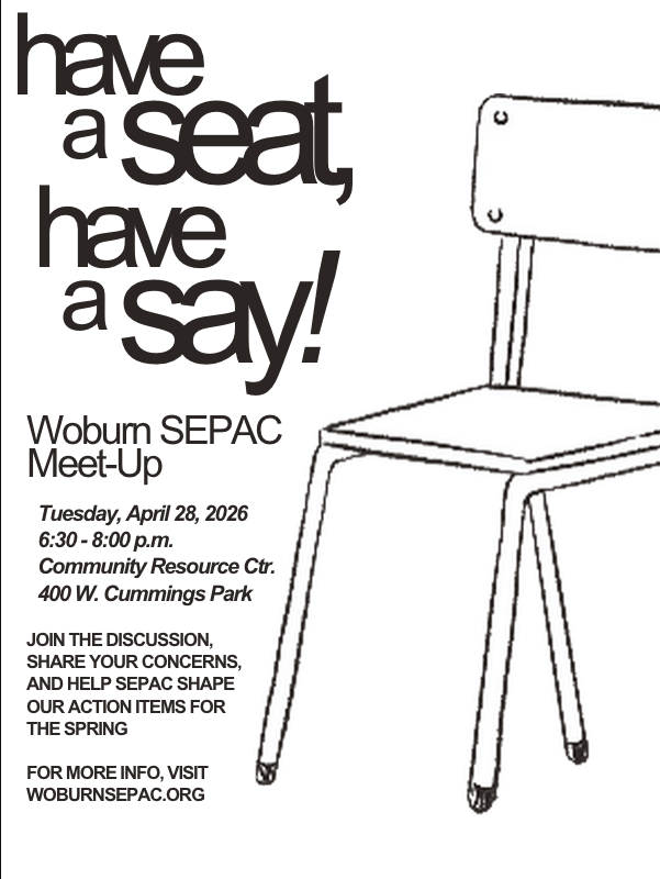The Woburn Special Education Parent Advisory Council (SEPAC) is a state-mandated advisory group that provides education and support for parents, guardians and educators of children ages 3 to 22 years old with special education needs. We are a city-wide organization of parents working together with teachers, administrators, the school committee and the community to provide an educational environment that is innovative, challenging, safe and nurturing for all children.
