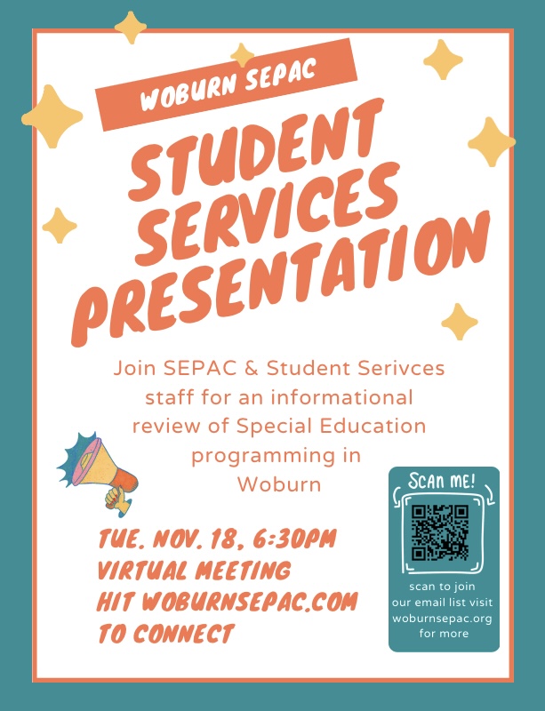 Woburn Public Schools recently shared this video to explain the updates to the new IEP, which will go into effect for the 2024-2025 school year. As always, you can reach out to us with any questions you might have at wps.SEPAC@gmail.com.